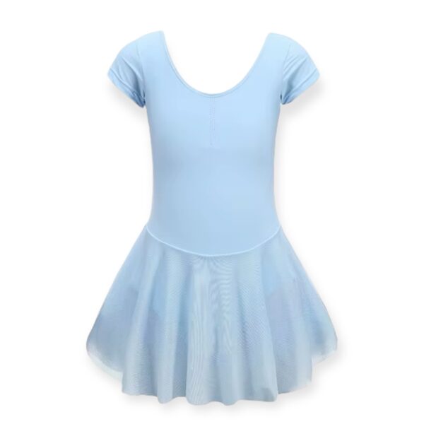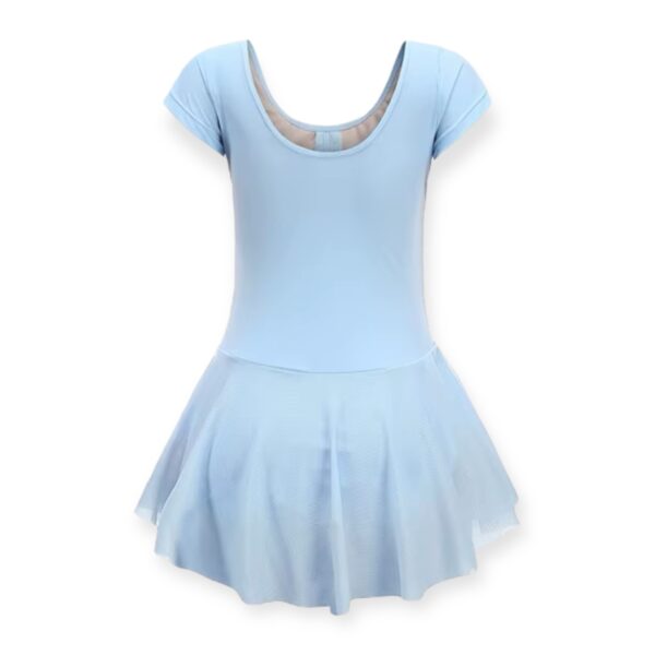 Το κοντομάνικο κορμάκι προσφέρει απόλυτη ελευθερία κινήσεων, ενώ η ενσωματωμένη φούστα από απαλό ελαστικό τούλι προσθέτει μια αέρινη κίνηση.